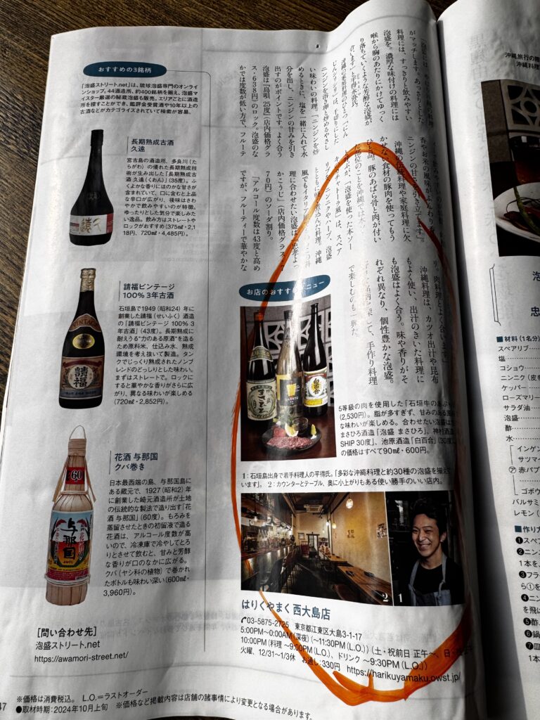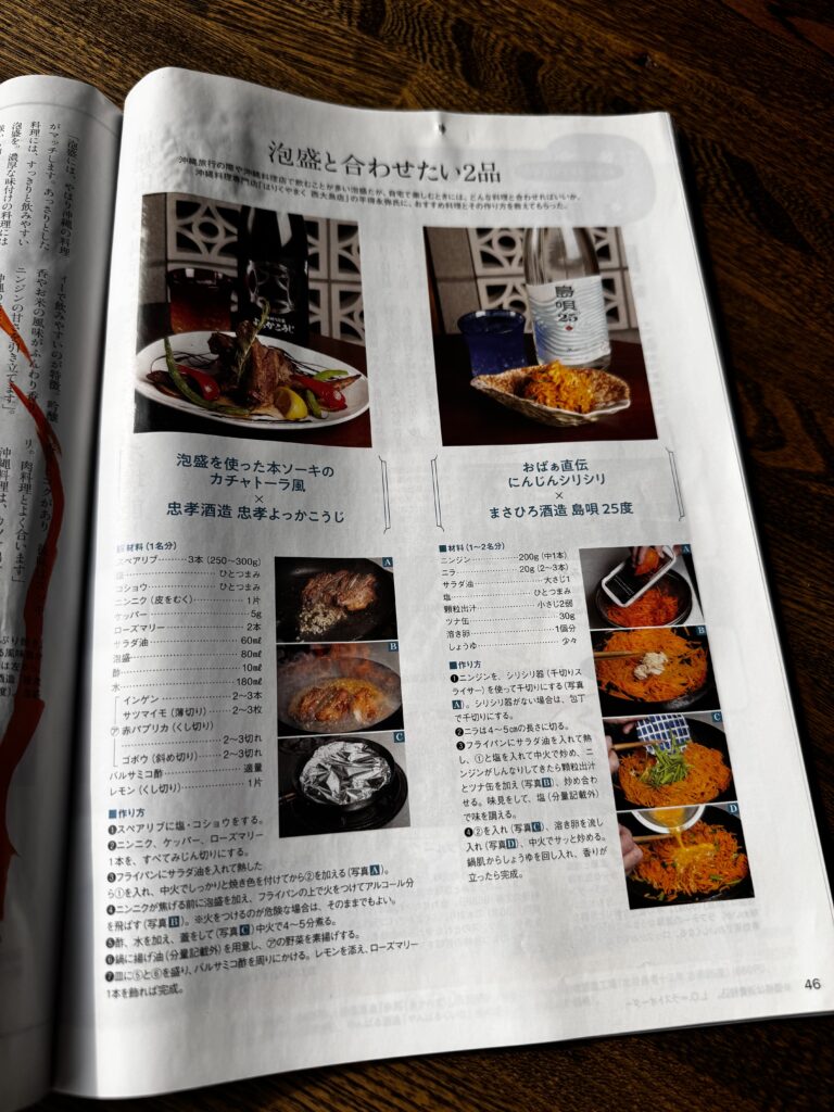 2025年3月 JCB THE PREMIUMの取材でした。今回は沖縄特集だったみたで、東京で渋谷のうーみやさんと、はりくやまくの2ヶ所だけの取材だったみたいです。泡盛と合う料理を作る。のがテーマで私達は、沖縄郷土料理✖️泡盛 イタリア創作料理✖️泡盛 に挑戦しました。 担当は若いシェフ石垣島出身の平得 元々イタリア料理で務めてたこ事もあって、得意だったみたい。【おばぁ直伝にんじんシリシリ✖️まさひろ酒造 島唄25℃】【泡盛を使った本ソーキーのカチャトーラ風✖️忠孝酒造 忠孝よっかこうじ】 どれも素晴らしかったです。